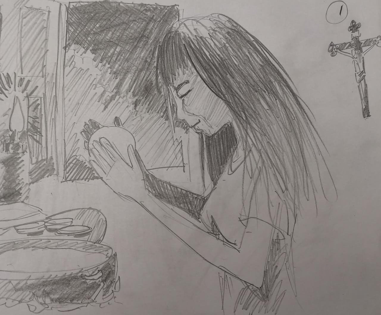 Caminó por el atrio hacia la torre, dobló la esquina del atrio y entró por la puerta del perdón. Después de santiguarse y de arrodillarse un momento, clavando en tierra una rodilla; se dirigió a una pila de agua bendita, “tomó” el agua con la punta de los dedos, se hizo las cruces rituales en la frente, en el pecho y en los labios y siguió adelante, desviándose por una nave lateral para ir a hincarse en un viejo reclinatorio que tenía allí su familia desde tiempo inmemorial. Arrodillada ya y mirando hacia el altar, notó que el padre que oficiaba era nuevo y lo mismo el “monacillo”.